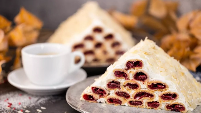 Ukusna torta Manastirska Izba jedna je od “najzimskijih” deserata. Ovo nije samo ukusan, već i prekrasan desert, koji podsjeća na drva za ogrjev posuto snijegom. Ideja jela je vrlo jednostavna – tuljci od tijesta pune se višnjama, slažu jedna na drugu u obliku piramide i namažu kiselim vrhnjem. Gotova slastica je slatko-kiselkasta, s primjesama bobičastog voća i vrlo lagana za želudac.