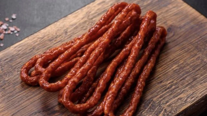 - Stavite mljeveno meso u vrećicu za hranu, napravite rupu na dnu debljine 0,5 cm i istisnite tanke trake na pergament.