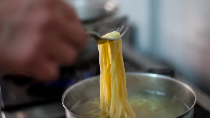 - Promiješajte odmah nakon potapanja u kipuću vodu. Prvih 30 sekundi je ključno. U tom trenutku se tjestenina može zalijepiti, pa je morate odmah odvojiti žlicom ili hvataljkama.