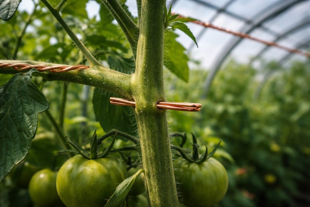 Bakar je snažan prirodni fungicid. Kada komadić žice utaknemo u stabljiku biljke, mikrodoze ovog metala počinju cirkulirati zajedno sa sokovima cijelim tijelom rajčice ili paprike. To stvara unutarnju barijeru koja doslovno spaljuje gljivične spore iznutra, sprječavajući razvoj bolesti.