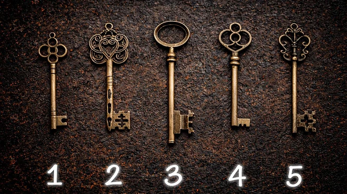 Pažljivo pogledajte pet vrsta ključeva prikazanih na slici i mentalno označite onu koja vam se čini najprivlačnijom. Ovaj test nedostataka otkrit će vaše glavne nedostatke i fobije koje ometaju uspjeh. Zbog njih ne možete postići ono što želite.