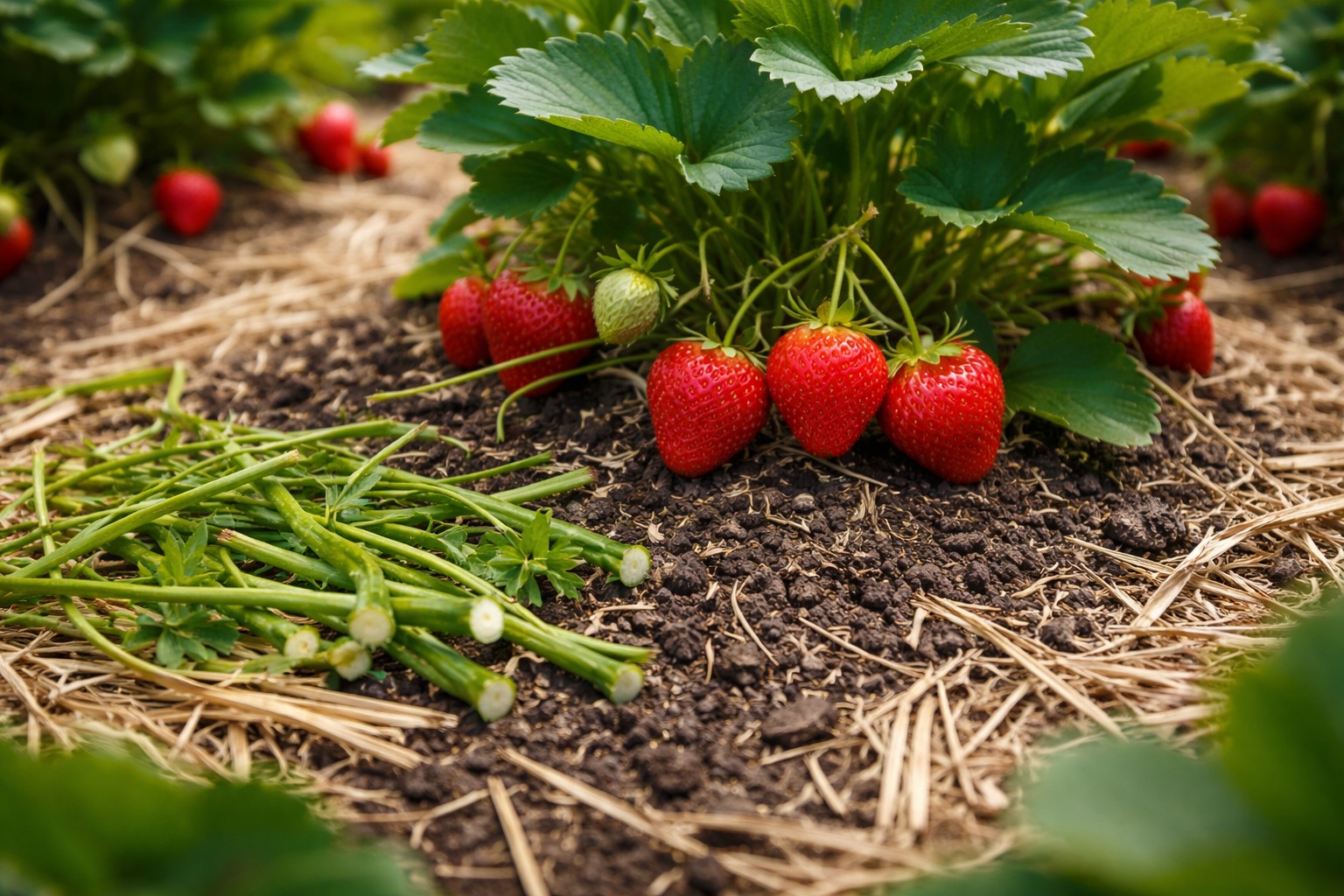 Suhi pepeo se raspršuje po vlažnom tlu između redova.