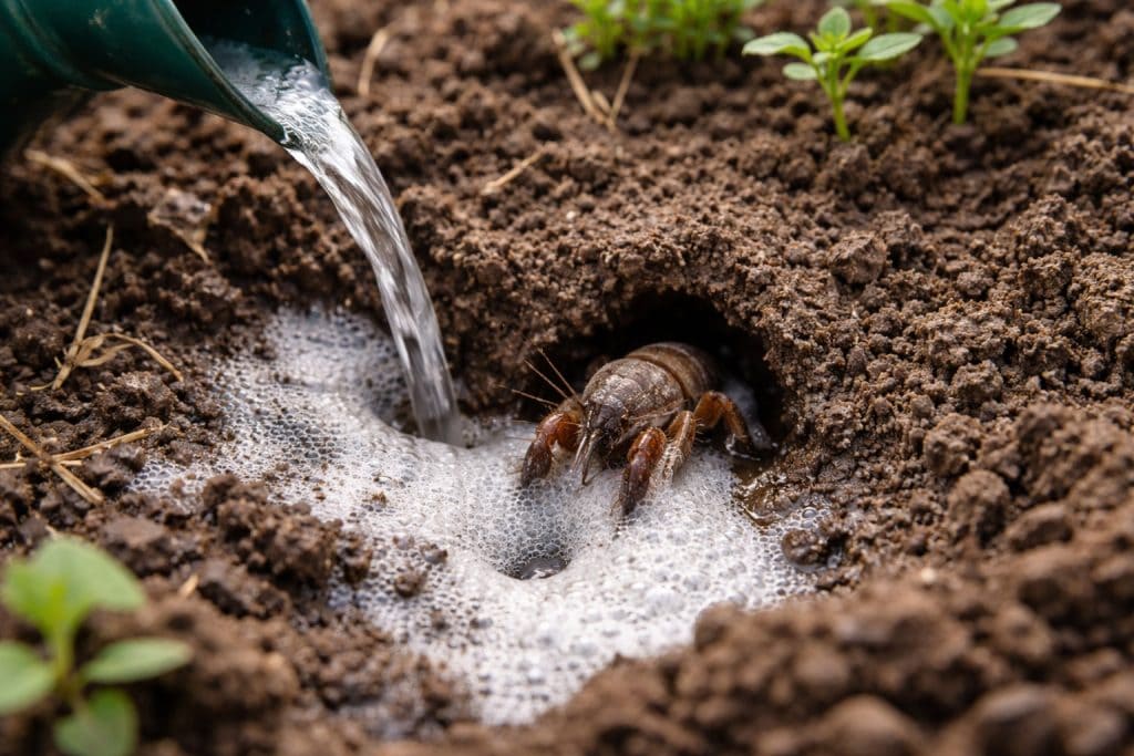 “Tajna je u tome da se otopina izlijeva polako, dopuštajući joj da ispuni sve grane staze. Cvrčak krtica počinje se gušiti i skoči na površinu, gdje ga je lako uhvatiti.”