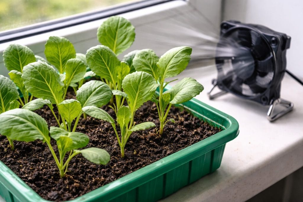 Tajna nijansa: ako nije moguće otvoriti prozor, instalirajte redoviti hladnjak računala pored paleta. Čak i slabi umjetni povjetarac nekoliko sati dnevno može spasiti kupus od smrti.