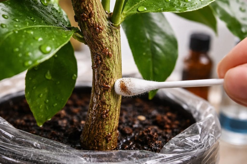 Za postizanje maksimalnih rezultata u proljeće, preporučujem korištenje kombinirana metoda. Najprije uklonite odrasle jedinke alkoholnom krpom, a zatim tretirajte biljku mješavinom ulja i sapuna. Ulje začepljuje dišnice onih jedinki koje ste propustili.