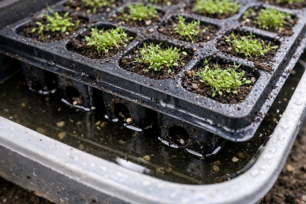 Mali volumen kasete je zamka. Tlo u njemu se trenutno zagrijava, a tanki korijeni lobelije nemaju rezervu vlage. U donjoj tablici usporedio sam dvije vrste spremnika kako biste razumjeli rizike.