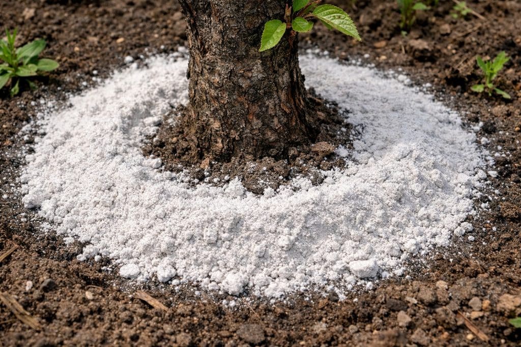 Tajna nijansa: nanesite brašno strogo duž projekcije krošnje, a ne samo na deblo. Tu se nalaze aktivni korijeni. Prah nakon posipanja obavezno ukopati u tlo na dubinu od 5-10 cm jer na površini bez kontakta s vlagom i tlom ne djeluje.