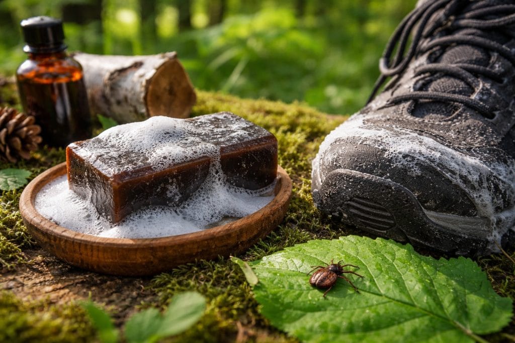 Tajna nijansa: Krpelji uvijek pužu odozdo prema gore. Obratite posebnu pozornost na cipele i čarape – trljate li suhu sapunicu po šavovima na tenisicama, stvorit ćete nepremostivu barijeru za parazita čak i na prilazima tijelu.