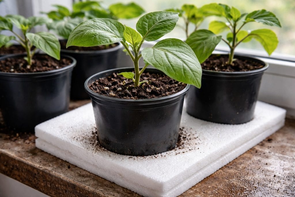 Tajna nijansa: stavite list pjenaste plastike ili obični frotirni ručnik ispod lonaca s sadnicama. Ovo izolira korijenje od hladne baze, a protok soka će se obnoviti unutar 24 sata.