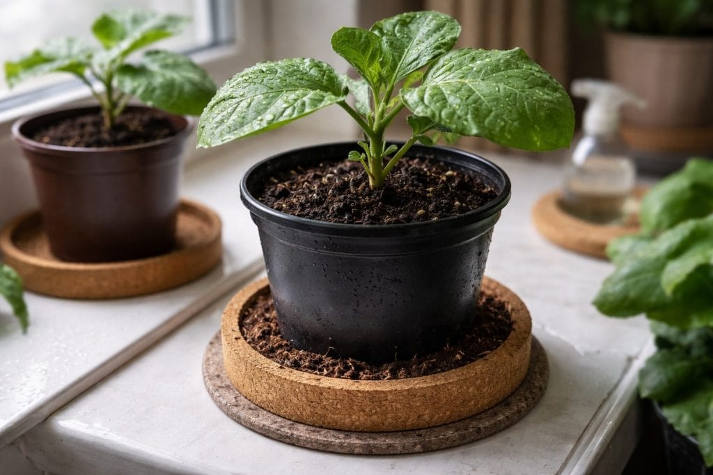 Patlidžan je “vodeni kruh”, ali ne podnosi stagnaciju vode. Važno je održavati ravnotežu između vlažnosti i prozračnosti supstrata.