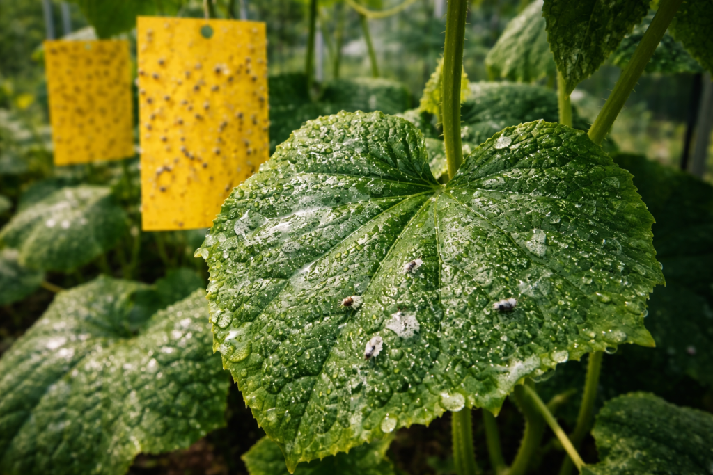 Krastavci pretjerano hranjeni dušikom postaju previše “ukusni” za štetnike. U proljeće preporučujem da se usredotočite na kalijevih gnojiva i silicij. Zbog toga koža lista postaje grublja, a malom ritcu bijelog mušca postaje teže probiti je. Učinkovita je i sadnja između redova potočarka ili neven – njihov oštar miris zbunjuje insekte.
