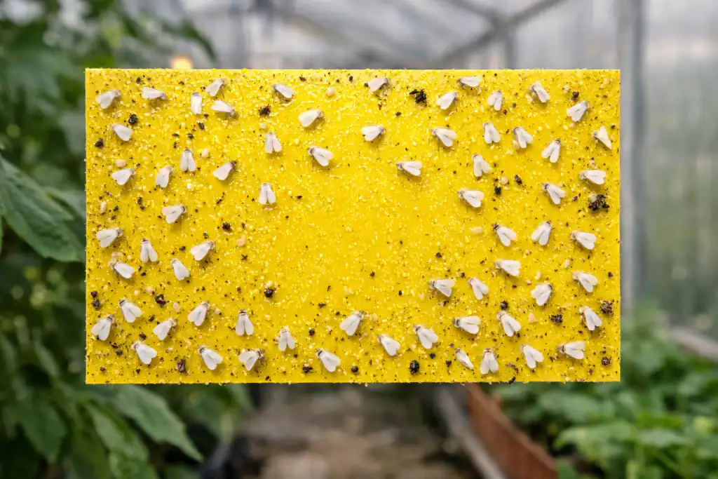 Prvo što trebate učiniti je instalirati žute ljepljive zamke. Bijele mušice neodoljivo privlači jarko žuta boja, a ovaj jednostavan alat može smanjiti odraslu populaciju za 80% bez upotrebe kemikalija. Stavite ih u razinu vrhova biljaka, jer insekti preferiraju najnježnije mlade izdanke.