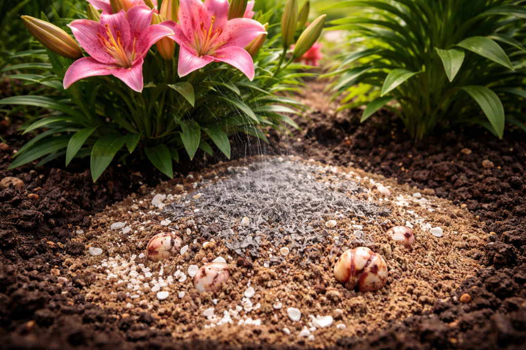 Da, pepeo smanjuje kiselost i daje kalij neophodan za cvjetanje, ali se ne može koristiti za orijentalne hibride.