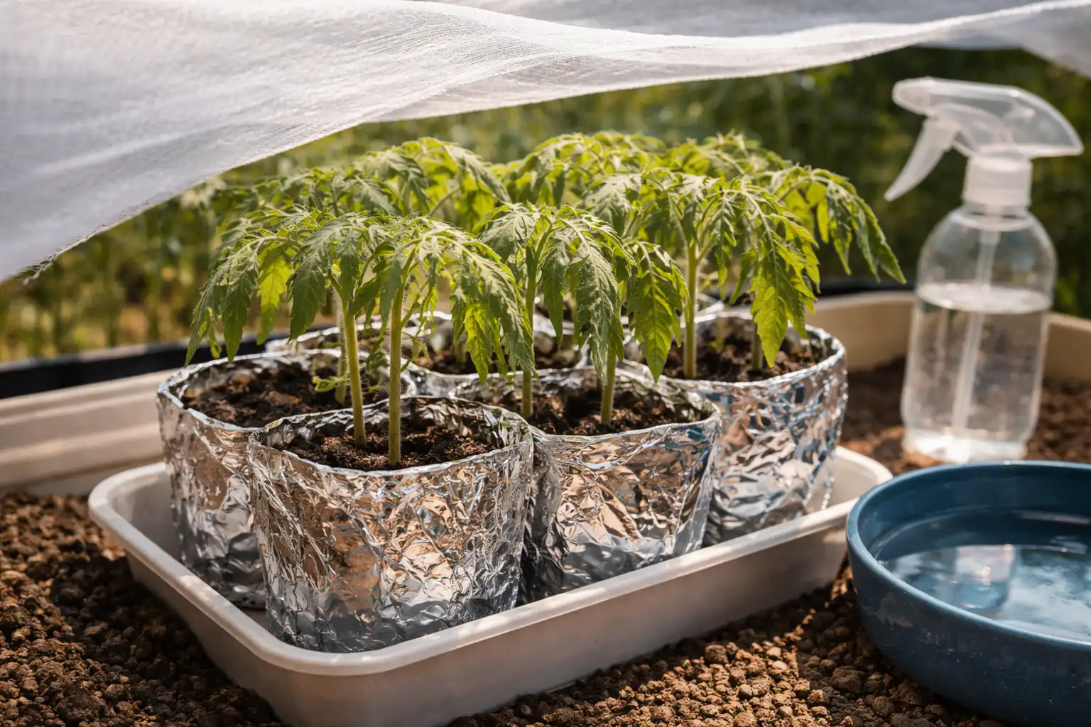 Poprskajte biljku adaptogenom i prekrijte odrezanom plastičnom bocom kako biste stvorili efekt staklenika.