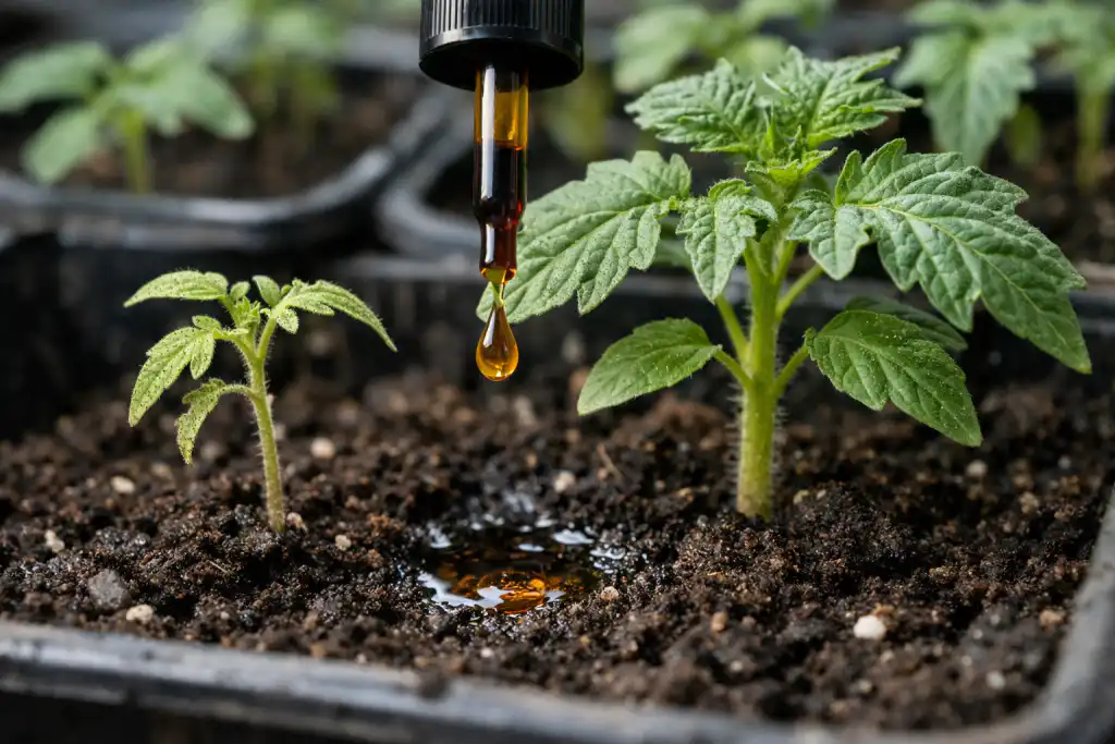 Jod nije klasično gnojivo poput dušika ili fosfora, ali djeluje kao antiseptički i stimulans rasta. Pomaže biljkama da bolje apsorbiraju dušik i štiti krhke korijene od truljenja.