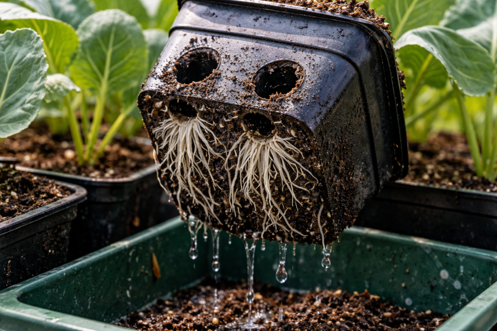 Važno je zapamtiti da su sadnice kupusa usjev hladne klime. Visoke temperature u kombinaciji s “teškim” zrakom uzrokuju da biljka isparava vlagu brže nego što je korijenje može apsorbirati iz neprozračenog tla. Dodavanje u tlo agroperlit ili vermikulit stvara upravo one zračne džepove koji sprječavaju “gušenje” korijena čak i uz obilno zalijevanje.