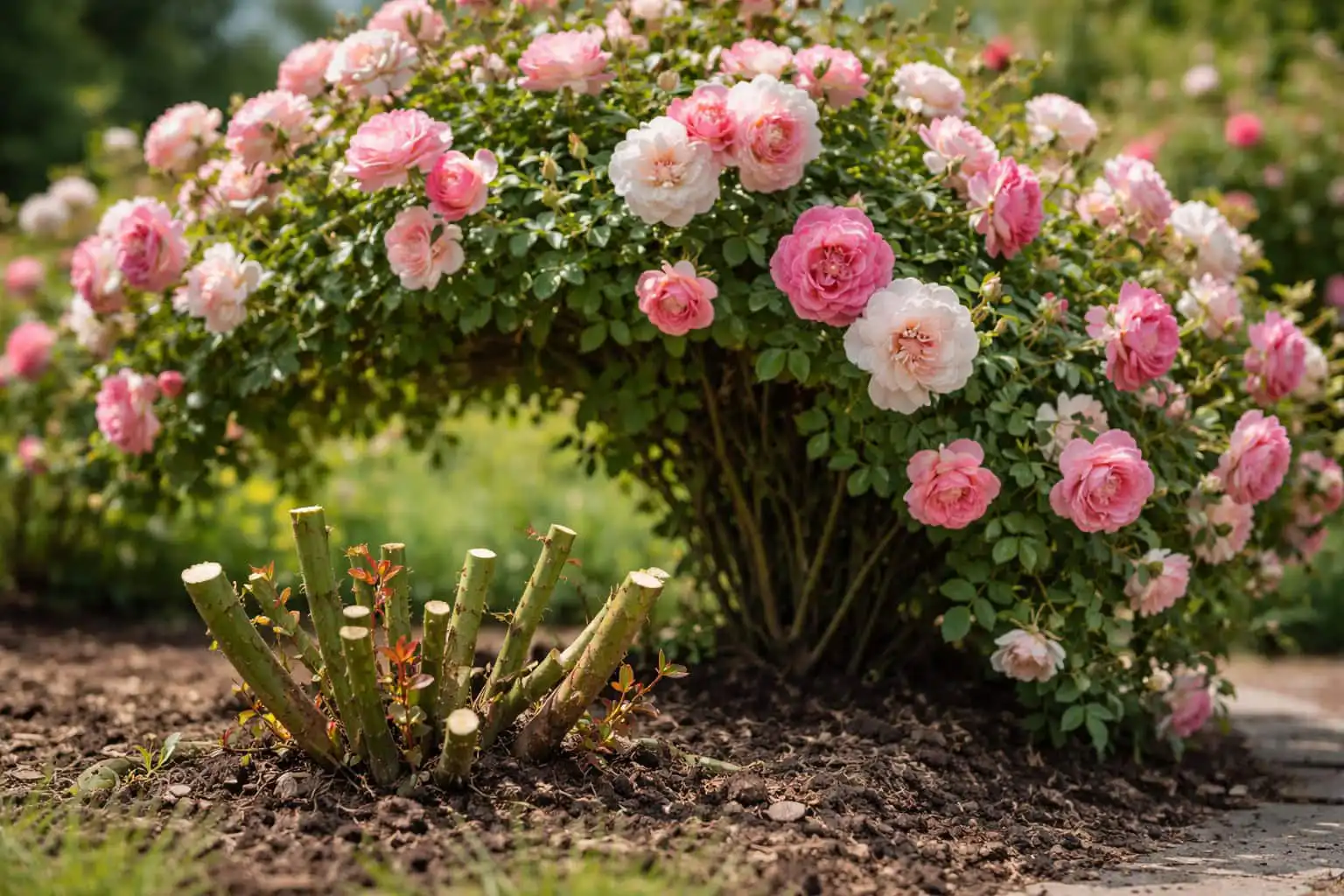Ostavite mali razmak (2-3 cm) između sloja borovih iglica i vrat korijena grm kako bi se izbjeglo vlaženje kore.