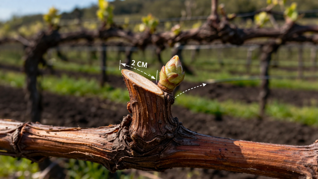 Nagib reza treba biti usmjeren od pupa kako sok (“suze” vinove loze) ne bi preplavio oko.
