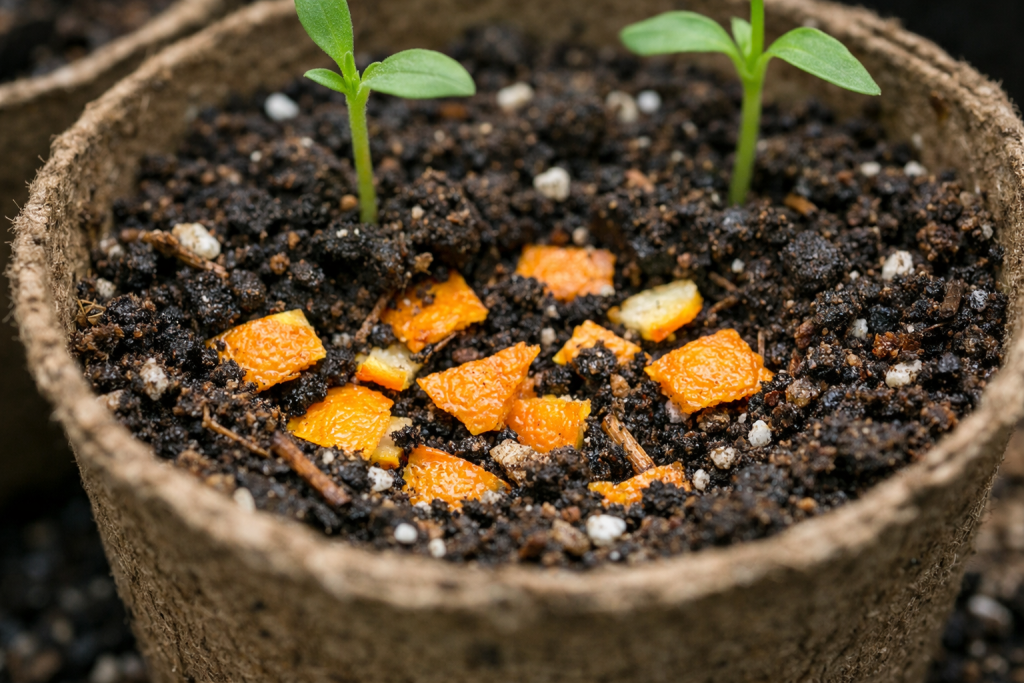 Korištenje otpadaka citrusa je ekološki prihvatljiv način za podršku biljkama tijekom najkritičnijeg razdoblja njihova života. Pravilna priprema sirovina osigurava odsutnost plijesni i postupno otpuštanje hranjivih tvari.