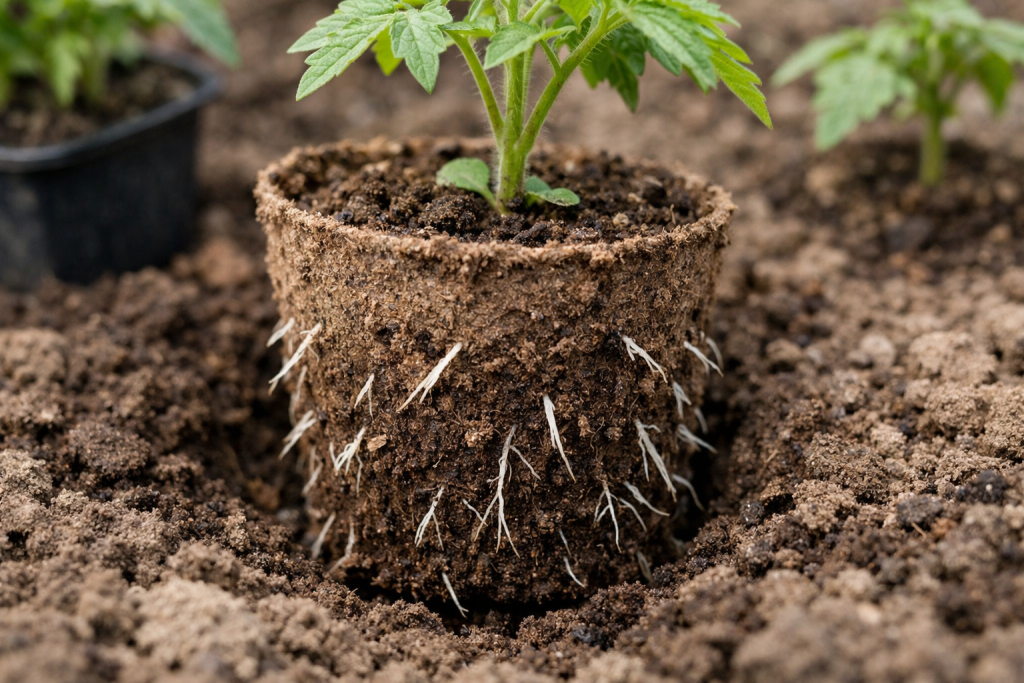 Kod sadnje u staklenik ili vrtnu gredicu važno je rubove lonca potpuno ukopati u zemlju. Ako gornji rub ostane iznad površine, djelovat će poput fitilja, povlačeći svu vlagu iz zone korijena u atmosferu. Ovo je uobičajena pogreška zbog koje sadnice mogu umrijeti čak i uz redovito zalijevanje.