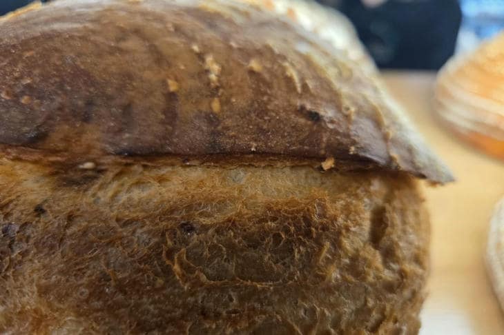 Kruh izlazi s debelom hrskavom koricom i savršenim mrvicama.