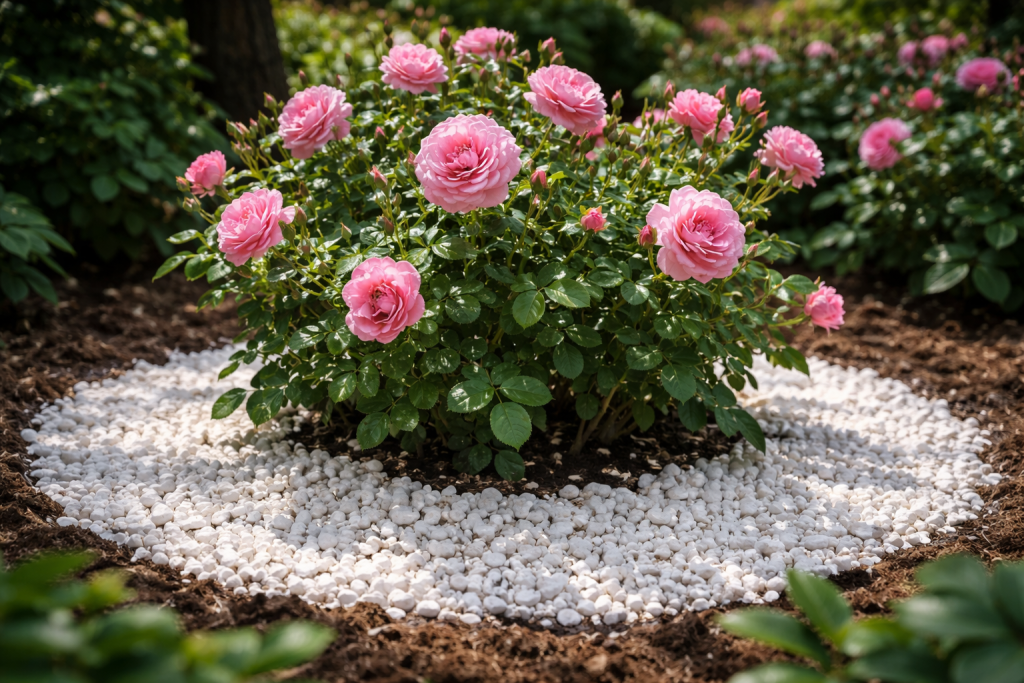Reflektirajući malč pomaže uhvatiti svaku zraku sunca. Koristim svijetli šljunak ili bijelo drveno sječko oko podnožja grma.