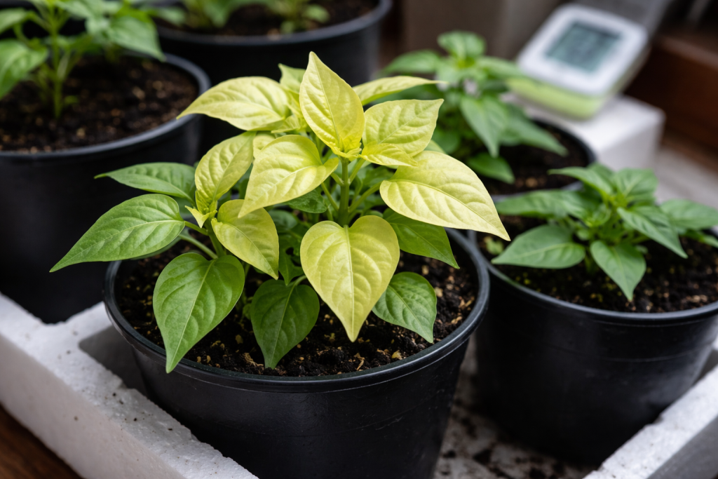 Kada termometar padne ispod 15 stupnjeva, korijenje paprike praktički prestaje raditi. tzv gladovanje fosforom i poremećaj sinteze klorofila. Čak i ako je tlo u posudi bogato humusom, biljka “ne vidi” hranu dok su joj “noge” na hladnoći.