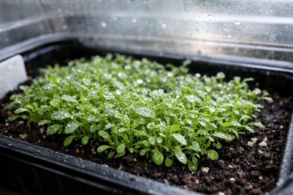 Koristite samo donje zalijevanje kroz pladanj kako biste izbjegli pribijanje klica na tlo kapljicama.
