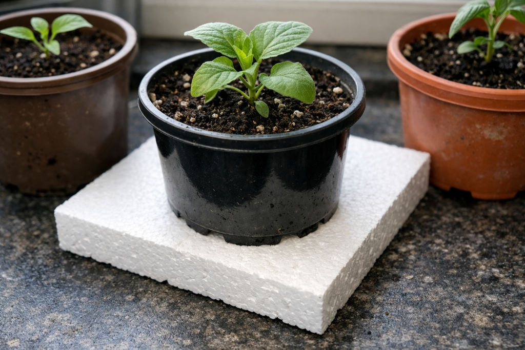 „Tajna nijansa: stavite list običnog pjenasta plastika 2-3 cm debljine. To će stvoriti toplinski prekid, korijenje će se trenutno zagrijati, a turgor lišća će se obnoviti bez nepotrebnog zalijevanja.”