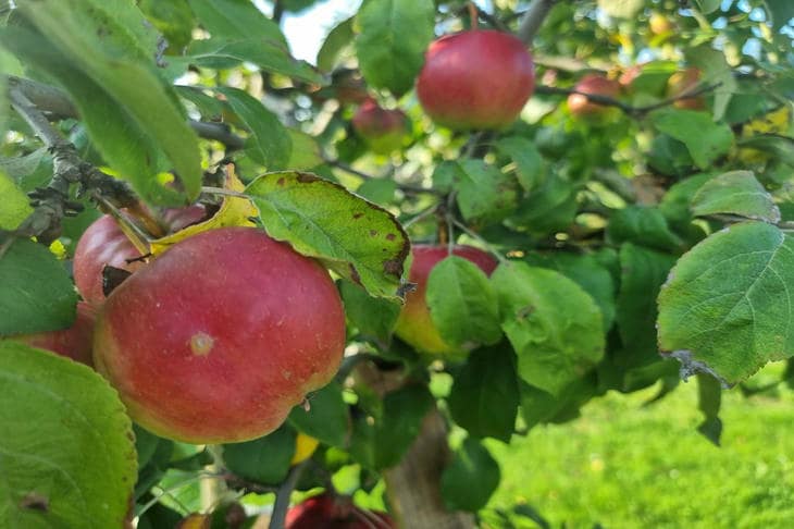 U otpalom lišću ispod stabala jabuke prezimljavaju spore krastavosti, truleži plodova i druge gljivične bolesti koje se u proljeće aktiviraju i napadaju stabla.