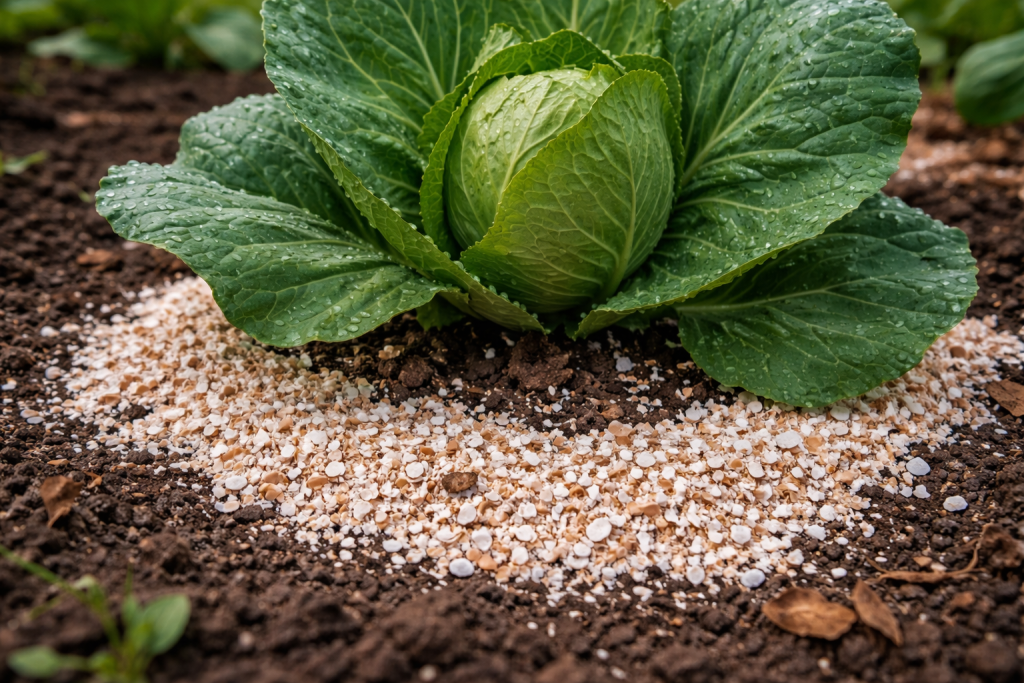 Kupus kategorički ne podnosi kisela tla – odmah se razvija u takvom okruženju klupski korijen. Ljuska djeluje nježnije od vapna ili dolomitnog brašna, ne izazivajući jak stres za mikrofloru.