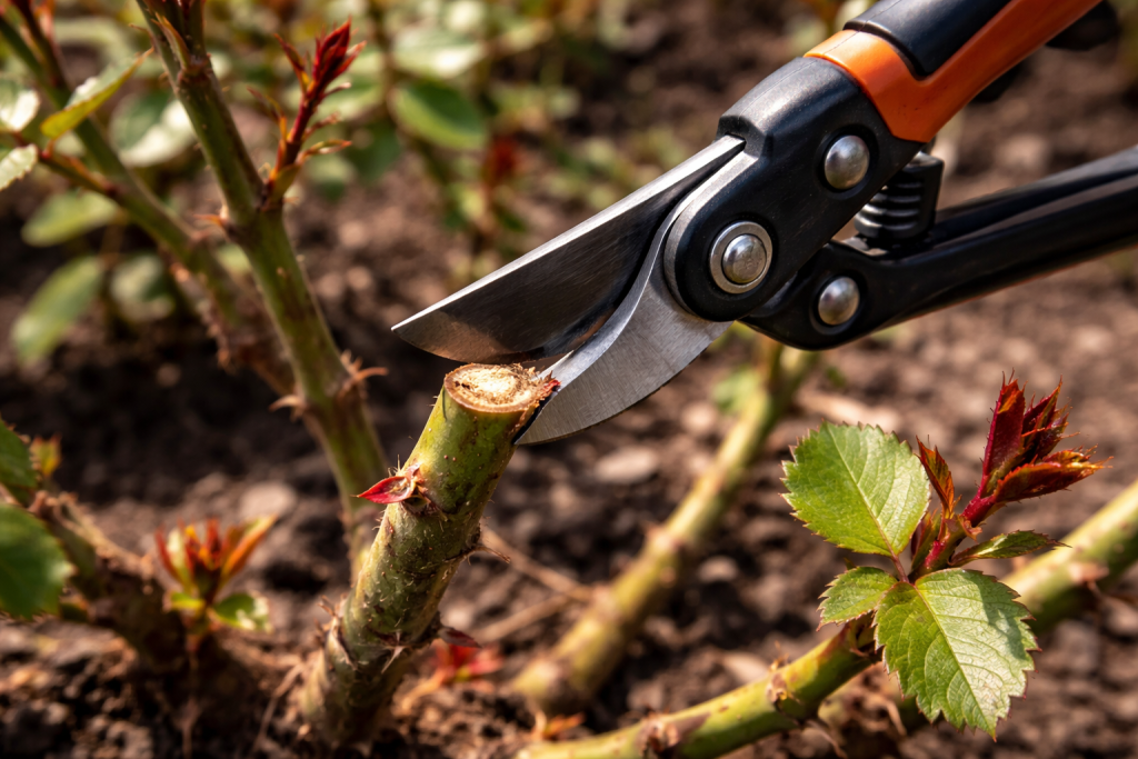 Ključ uspjeha je pravi alat. Uvijek koristim samo naoštrene obilazni rezačkoji čini čisti rez bez drobljenja tkiva stabljike. Ako ostavite poderane rubove, infekcija će odmah doći tamo, a ruža će početi crniti od vrha do dna.