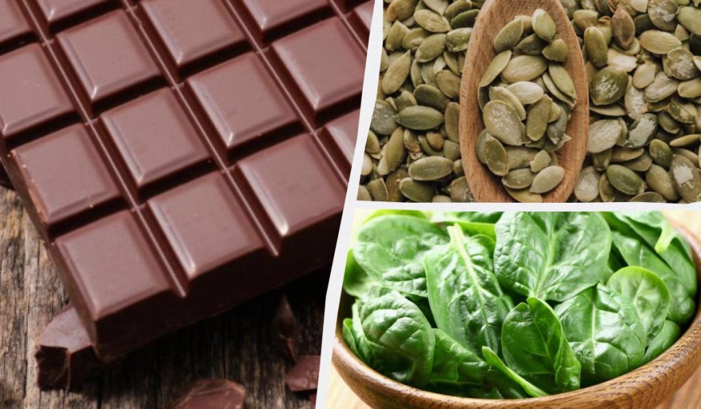 Čokolada, sjemenke bundeve i špinat mogu pomoći u povećanju razine magnezija u tijelu / My kolaž, foto depositphotos.com