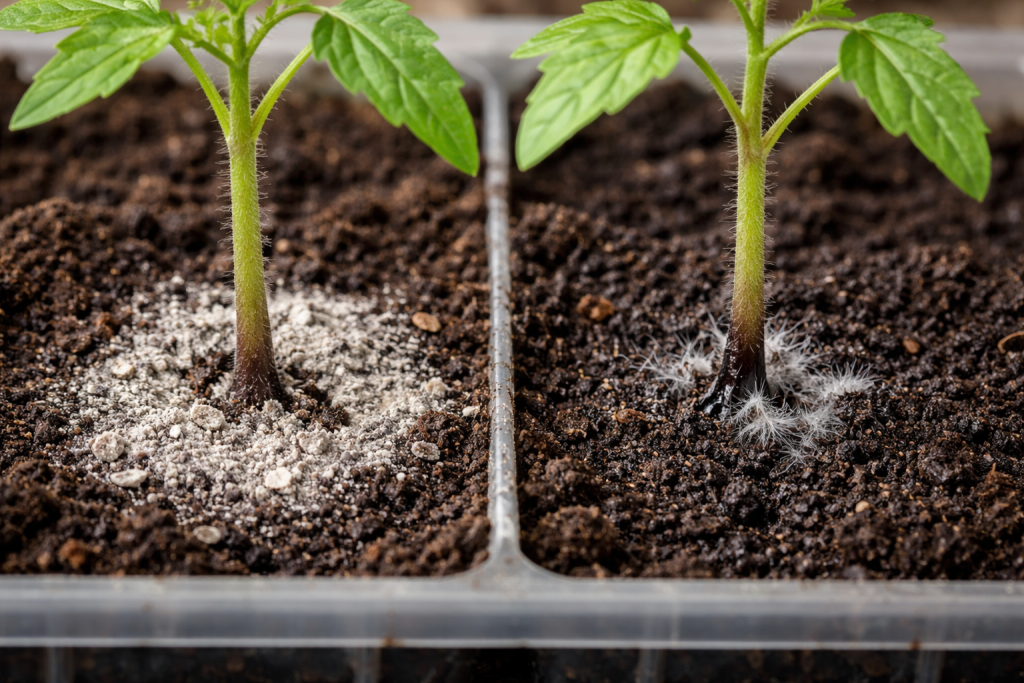 Čak i kupljeno zemljište može biti izvor infekcije. Prije sadnje uvijek dezinficiram. Najpouzdanija opcija je pečenje u pećnici ili kuhanje na pari, ali ako izgubite vrijeme, upotrijebite biološke fungicide. Upamti to lopov voli kiseli okoliš, pa dodavanjem dolomitno brašno pomoći će normalizirati ravnotežu i zaštititi stabljike.