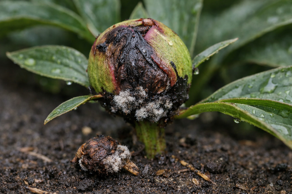 Ovo je siguran znak sive truleži (botritis), koja se javlja zbog viška vlage i loše ventilacije grma.