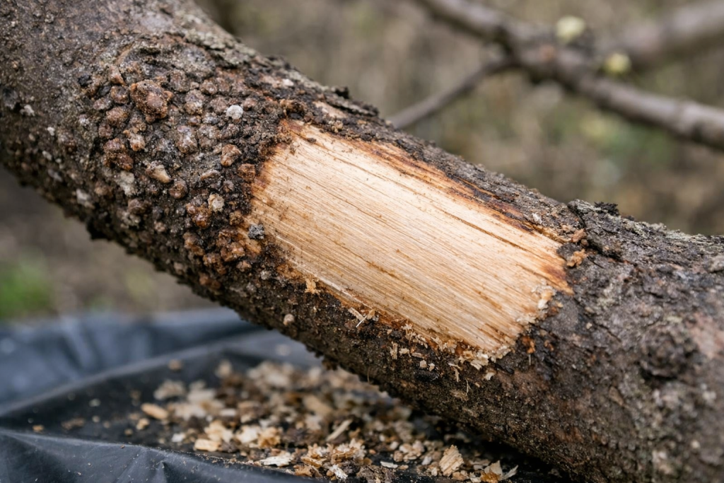 Prije svega, oboružajte se žičanom četkom ili lopaticom. Prije nego što počne protok soka, morate pažljivo očistiti vidljive kolonije s debla. Pazite da ne oštetite kambijum – živi sloj ispod kore.