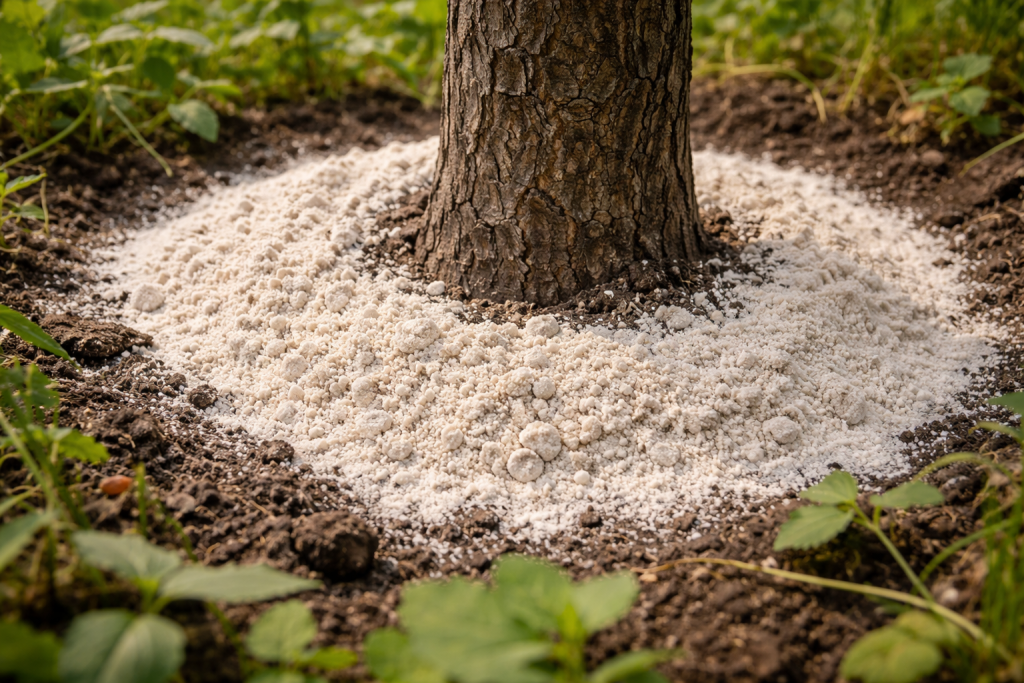• Pospite puder duž izbočine krune, a ne samo po deblu. • Dodatak obavezno unijeti u tlo na dubinu od pet do deset centimetara. • Nakon primjene prolijte tlo vodom kako biste aktivirali procese.