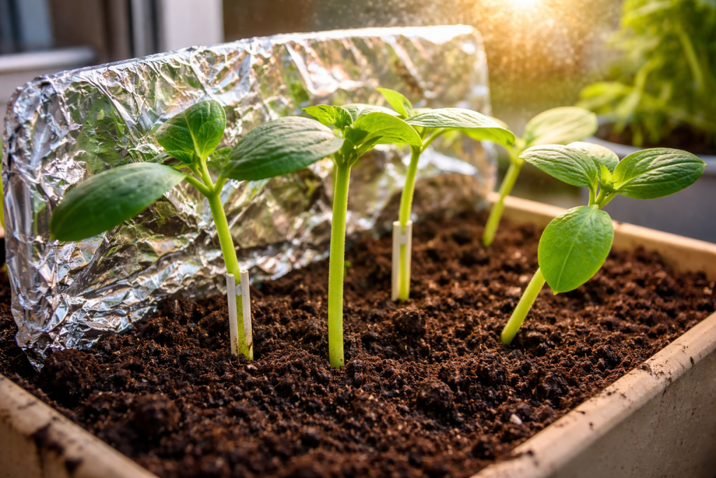 Postavite foliju ili ogledalo iza sadnica da reflektira preostalo dnevno svjetlo.
