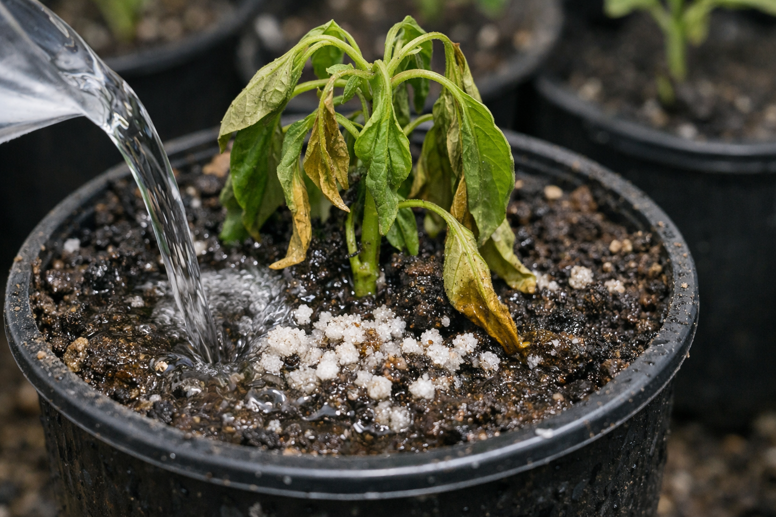 U sušnim područjima hilling se provodi rjeđe kako bi se zadržala vlaga u dubini. Visok greben brže isparava vodu i isušuje tlo oko korijena.Primjena gnojiva u brazde prije sadnje osigurava ishranu tijekom cijele vegetacije. Organska tvar se sporo razgrađuje i postupno hrani biljku bez spaljivanja korijena.