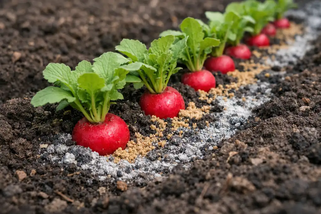 | Drveni pepeo | Smanjuje kiselost i osigurava kalij | Prašenje gredica prije sjetve |