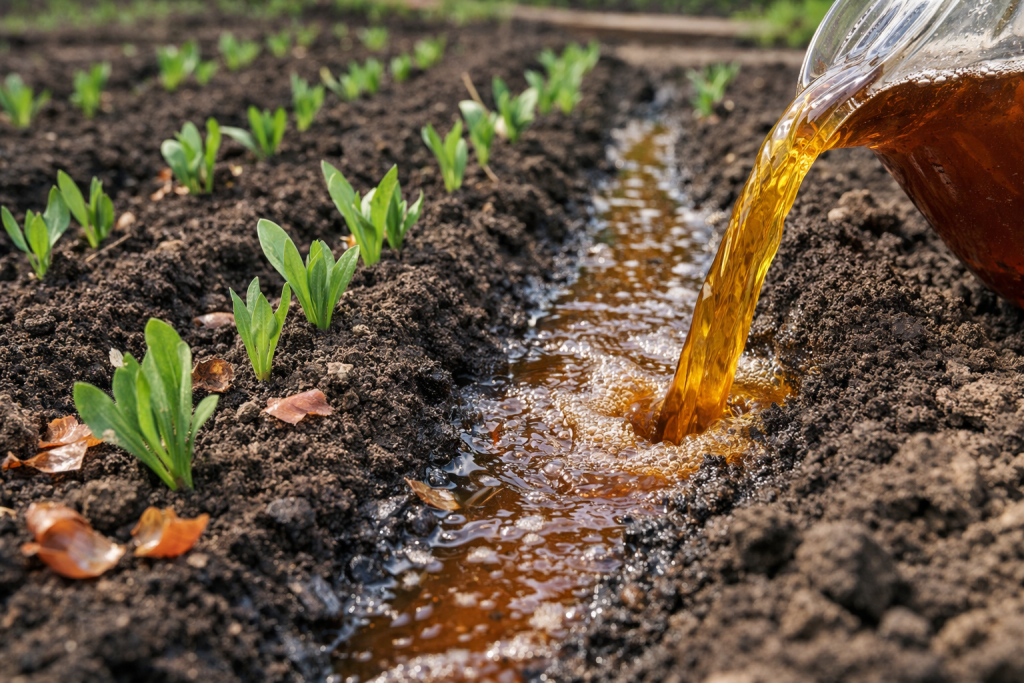 Za maksimalnu učinkovitost proljetna prihrana treba provoditi isključivo na vlažnom tlu. Suho tlo lošije provodi hranjive tvari do najmanjih korijenovih dlačica. Ako se planira folijarno tretiranjebolje je odabrati oblačan dan bez vjetra ili večer. Za razliku od mnogih pripravaka iz trgovine, pravilno pripremljen prirodni ekstrakt stvara tanki zaštitni film na lišću, koji odbija križanog buhača.