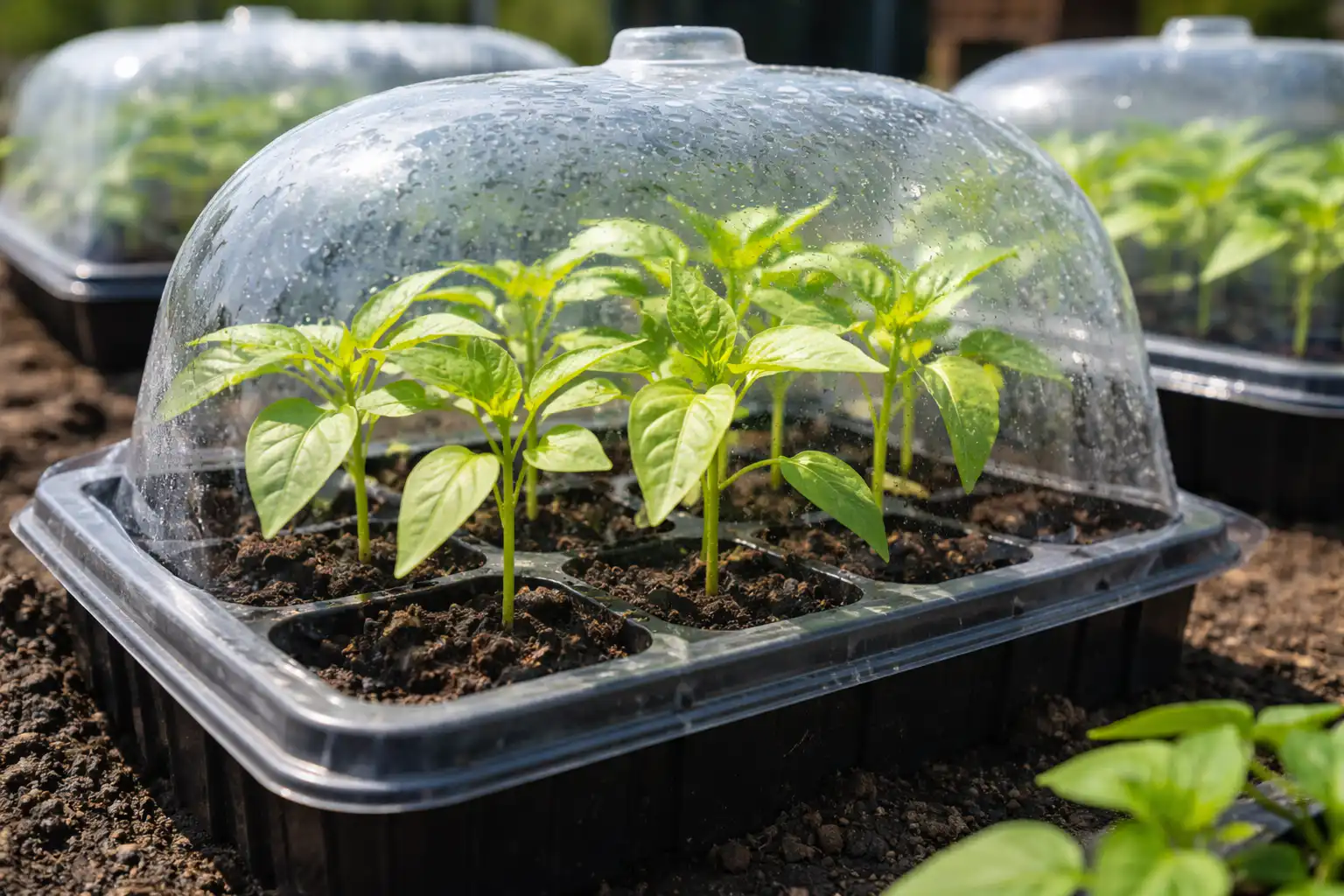 Prekrijte sadnice naopako okrenutim plastičnim kutijama kako biste stvorili sjenu.
