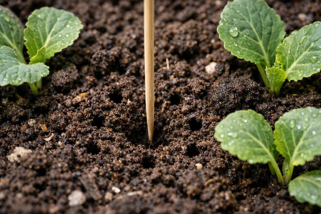 Tajna nijansa: pažljivo labavljenje površine tla običnom drvenom čačkalicom uništava gustu koru i trenutno otvara kisik do korijena bez oštećenja.