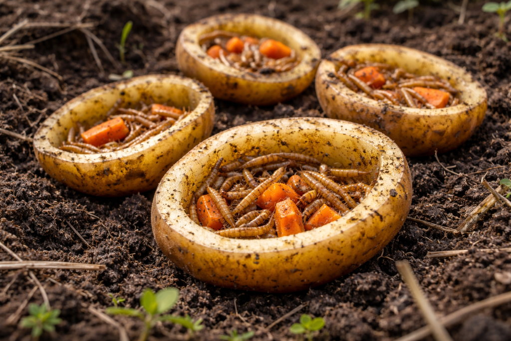 Stvaranje mamaca omogućuje vam da fizički uništite populaciju prije nego što stigne do vrijednih usjeva. Dovoljno je stari krumpir narezati na velike ploške, nataknuti na duge drvene ražnjiće i zakopati u gredicu. Rubovi ražnjića trebaju stršati iznad tla kako bi se zamka lako pronašla.