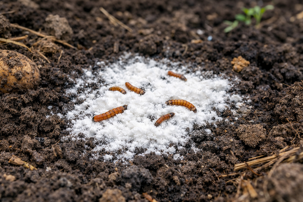 Glavna tajna leži u činjenici da je žilava ličinka kliktava, kod nas poznatih kao žičnjakpreferira kisela i vlažna tla. Redovitim korištenjem agrokemikalija često neprimjetno zakiseljavamo tlo. Redovno soda bikarbona djeluje kao blagi dezoksidans. Ulazeći u zemlju, lokalno pomiče pH na neutralnu ili blago alkalnu stranu.