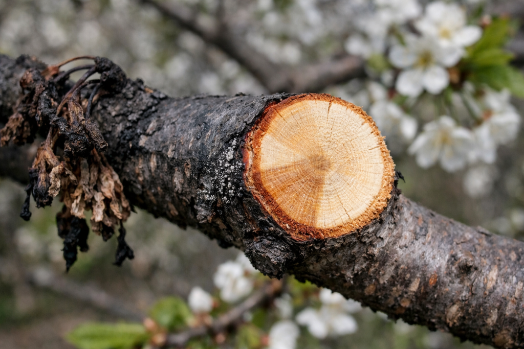 Glavna pogreška je zbuniti gljivična bolest s posljedicama ponovnih mrazeva. Spore inficiraju stablo upravo u trenutku cvatnje, prodirući kroz tučak direktno u tkivo grane.