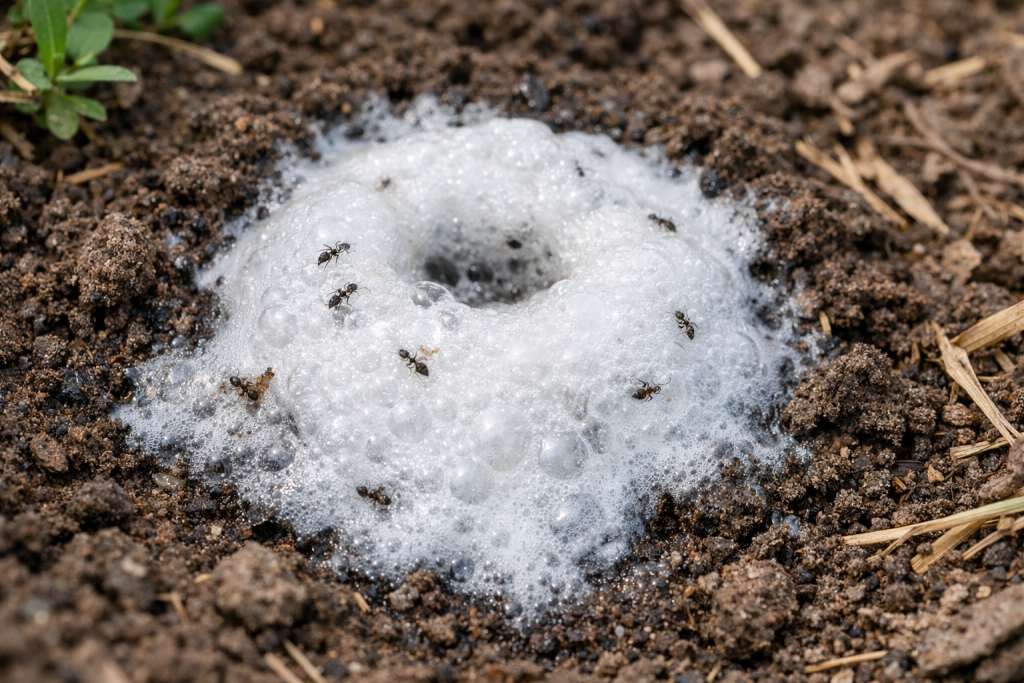 Glavna tajna uspjeha leži u burnoj kemijskoj reakciji ovih dviju komponenti upravo u mravinjaku. Šištajuća pjena ne samo da plaši štetočine, već trenutno prodire u duboke prolaze i dolazi do mjesta gdje se skriva kraljica mrava.