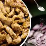 Kad je riječ o tome što prvo popržiti – luk ili piletinu, povrće se svakako stavlja u tavu 3-4 minute ranije. Piletina se vrlo brzo kuha, a dok se kuha, prženje će biti savršene konzistencije.