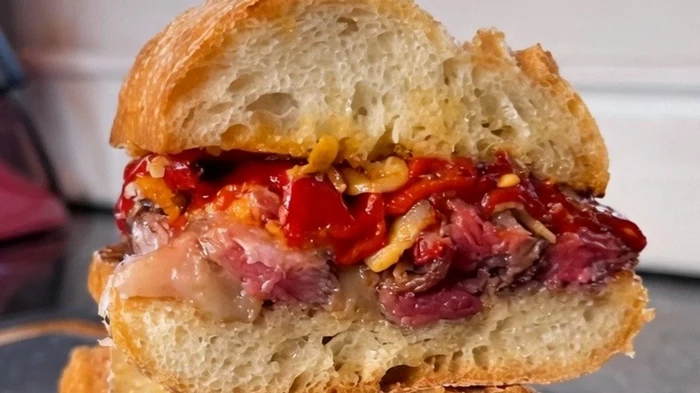 - Stavite entrecote, dodajte piquillo papričice, malo češnjaka i poškropite maslinovim uljem. Rezultat je sendvič s hrskavom koricom, mekanom unutrašnjošću i bogatim okusom.