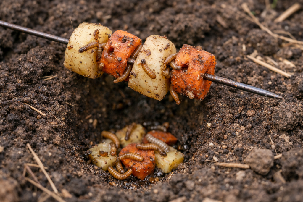 Da biste stvorili učinkovitu zamku, jednostavno narežite stari krumpir ili mrkvu na velike komade. Potrebno ih je nanizati na žicu i zakopati na dubinu od deset do petnaest centimetara u različitim dijelovima vrta.